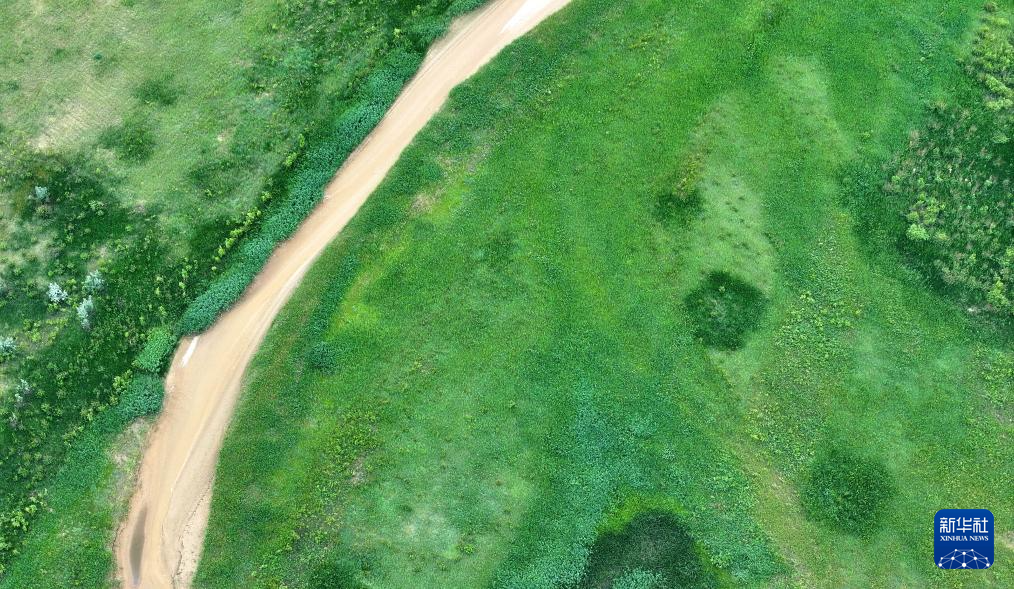 在寧夏賀蘭縣境內拍攝的黃河濱河濕地(無人機照片,6月22日攝)。
