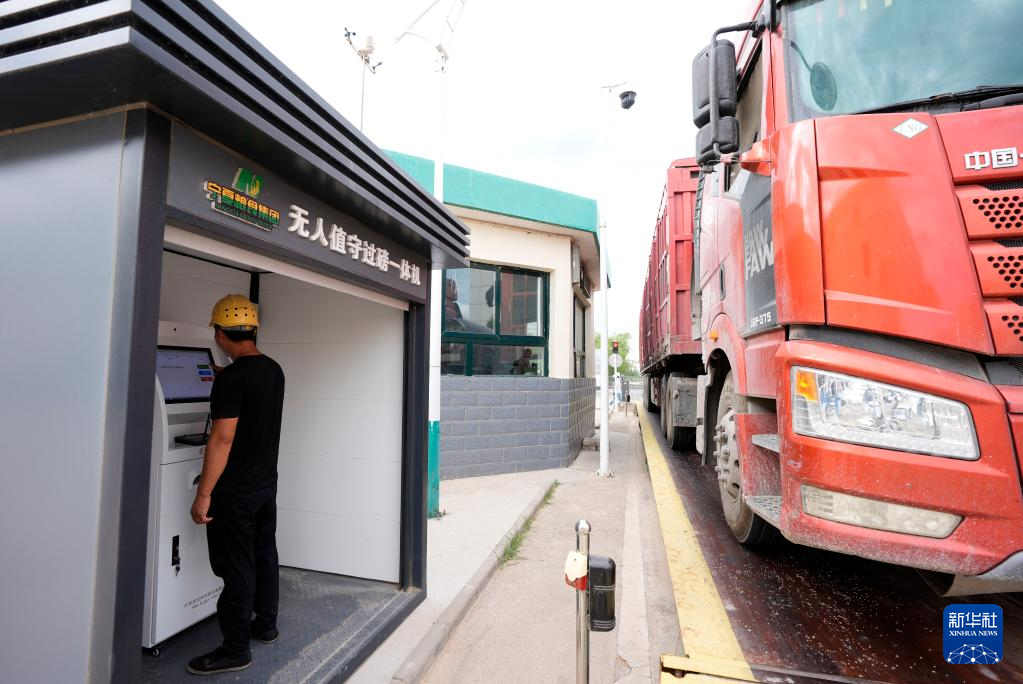 7月16日,交售糧食車輛在寧夏糧食集團銀川濱河儲備庫進行無人值守過磅。