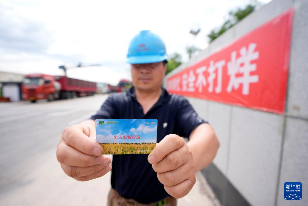 7月16日,交售糧食農戶在寧夏糧食集團銀川濱河儲備庫展示糧食“出入庫智行通”卡。