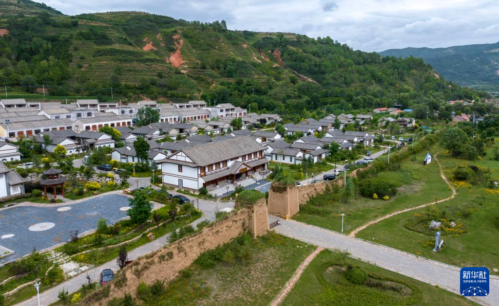 這是7月19日拍攝的寧夏固原市涇源縣香水鎮新月村香水風情堡民宿旅游區(無人機照片)。