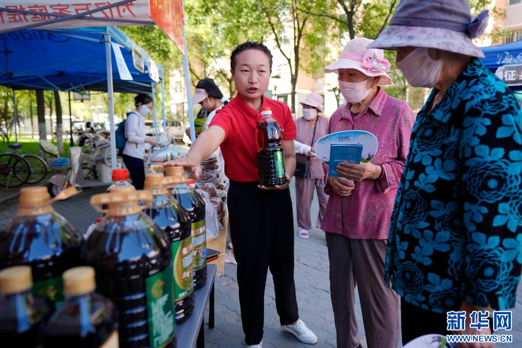 7月30日,工作人員在“崇軍助農集市”上為居民介紹當地特色農產品。新華社記者 王鵬 攝