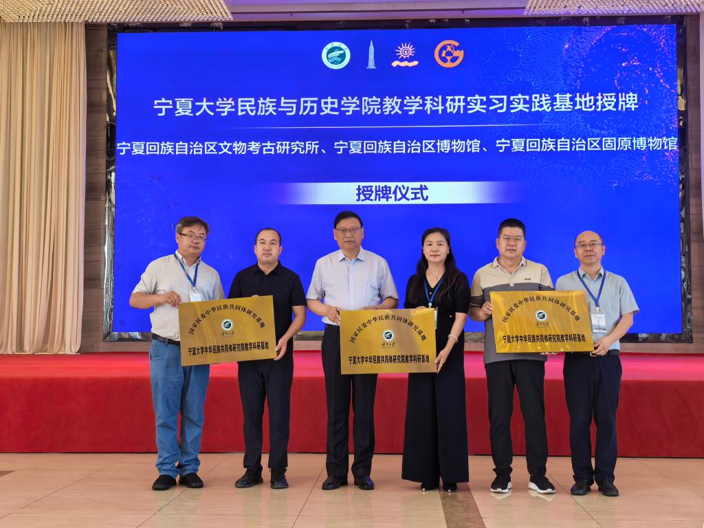 在開幕式后,產學研用系列簽約與授牌儀式舉行。寧夏大學民族與歷史學院與寧夏固原博物館簽訂合作框架協議;寧夏大學中華民族共同體研究院與寧夏回族自治區博物館簽約,共建革命文物協同創新研究中心;寧夏大學農牧交錯帶中華文明演進實驗室工作站完成授牌,覆蓋寧夏文物考古研究所、寧夏回族自治區博物館及固原博物館;寧夏大學民族與歷史學院授予寧夏文物考古研究所、寧夏回族自治區博物館“教學科研實習實踐基地”。