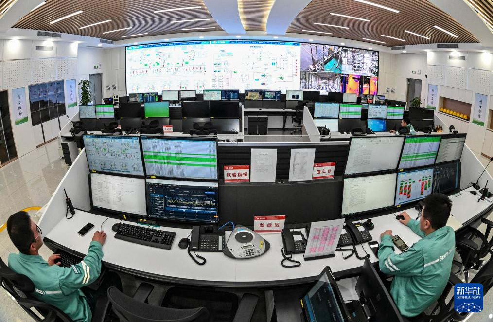 8月20日,在“寧電入湘”工程寧夏中衛市中寧換流站內,檢修人員在主控室監控設備運行情況。