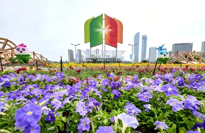 這是8月28日在寧夏銀川市拍攝的第七屆中國—阿拉伯國家博覽會開幕式會場外景。 新華社記者 馮開華 攝