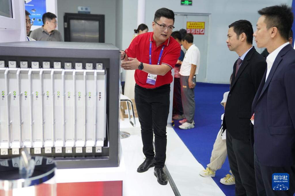 8月29日,參展商在博覽會現場向觀眾介紹一款浸沒相變液冷服務器。新華社記者 趙宇思 攝