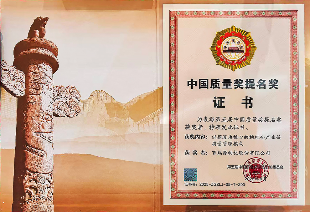 • 百瑞源榮獲中國質量獎提名獎 實現枸杞行業零突破