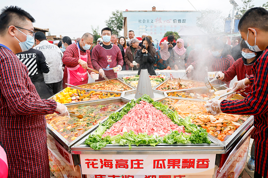 “第一次在豐收節上吃這么豐盛的火鍋,熱鬧又暖心,感覺特別有意義!”來自銀川的游客王倩茹說,她特意帶著家人來參加豐收節,既體驗了鄉村風情,又品嘗了特色美食,收獲滿滿。