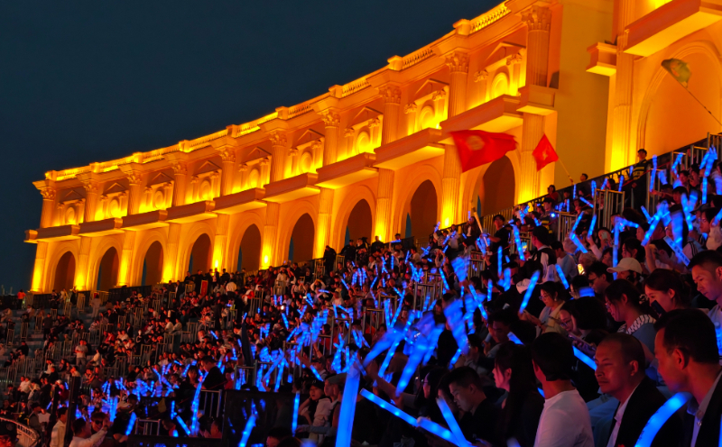 夕陽西下,巍峨的賀蘭山與閱海湖披上金色霞光,大家在領唱歌手的帶領下,共同唱響《團結就是力量》《美麗中國》《我的祖國》《我愛你中國》等歌曲,提前為祖國送上生日祝福。覽山落日見證了他們在賽道上拼搏、在崗位上付出的身影,也聆聽著他們勝利的歡歌和對祖國的深情。
