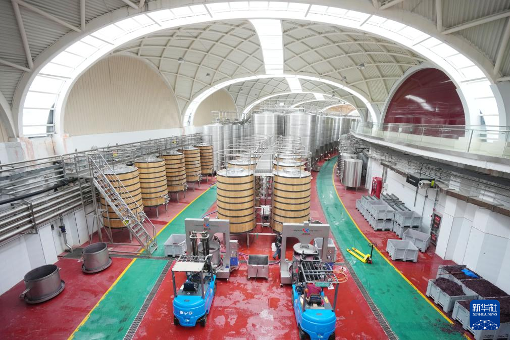 工作人員在銀川市永寧縣閩寧鎮賀蘭紅酒莊釀酒車間工作(10月14日攝)。新華社記者 王鵬 攝