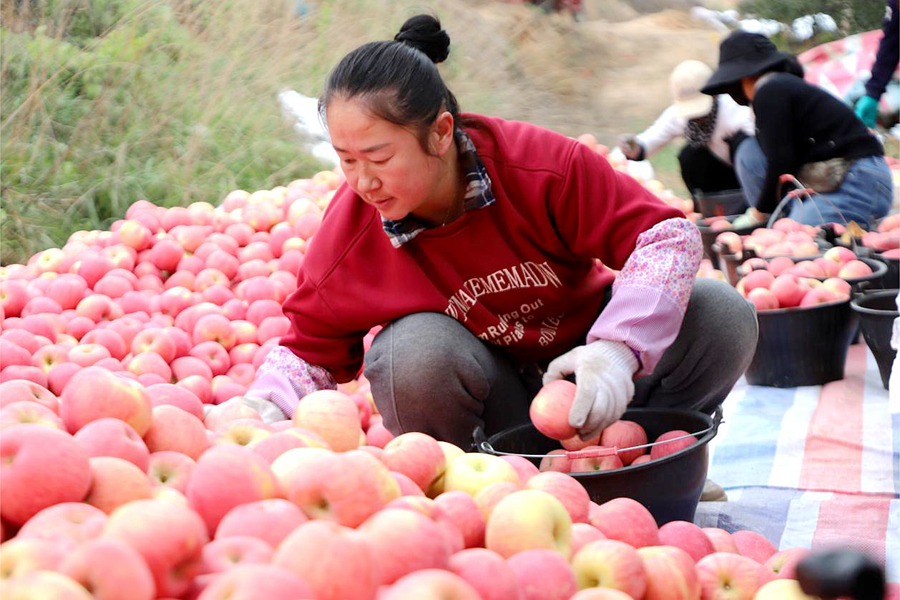 在烽火墩村,1200畝蘋果種植基地里,紅彤彤的蘋果掛滿枝頭,“以前蘋果沒地方儲存,現在有了冷庫,可以錯峰銷售賣上好價錢!”果農秦鵬飛一邊采摘一邊說,“我的50畝蘋果年收入能有40多萬元?!贝謇锝ǔ?座冷鏈庫,通過租賃創收,預計年度增收10萬元?!敖衲晏O果行情好,是個豐收年,大家都高興!”烽火墩村黨支部書記馬超望著累累碩果笑容滿面。預計全村的蘋果今年畝產達6000斤,商品果占比超65%,畝均效益突破1萬元,實現了從“種得好”向“賣得好、收益高”的轉變。