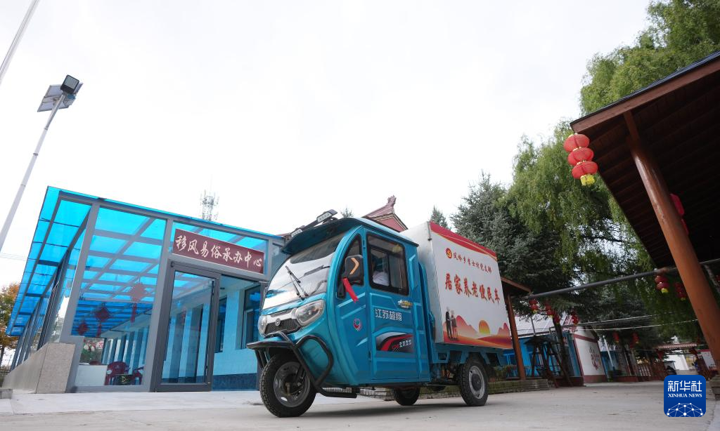 隆德縣鳳嶺鄉李士村村民駕駛居家養老便民車為行動不便老人送餐(10月26日攝)。